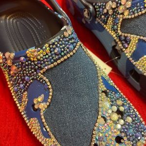 Denim and Diamonds 💎 beautiful and one of a kind customized crocs in denim and crystal trims and stones.