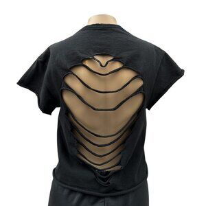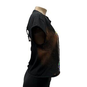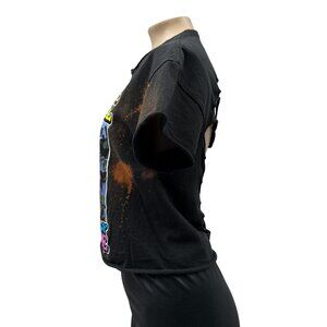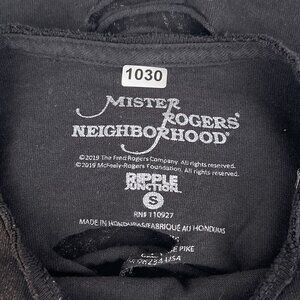 Tags: Mr Rogers shirt, distressed tee, graphic tee, back cutout shirt, cotton blend top, unisex clothing, vintage style shirt, small black tee, Ripple Junction shirt, Mister Rogers clothing, 2019 graphic t-shirt, slashed back top, unique graphic shirt