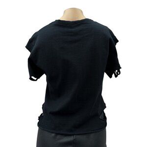 Distressed cut-outs on sleeves and neckline. Back shows minor. Please see photos of customization.