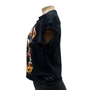 This Def Leppard 2020 tour t-shirt features a distressed design with intentional cut-outs. Made from 100% cotton, it's stylish and comfortable for casual wear.