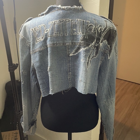 Custom denim distressed hand painted Led Zeppelin jacket (cropped)