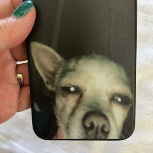 Show off your love for dogs with this custom phone case featuring a unique dog print. The sleek black design adds a touch of elegance to your device.