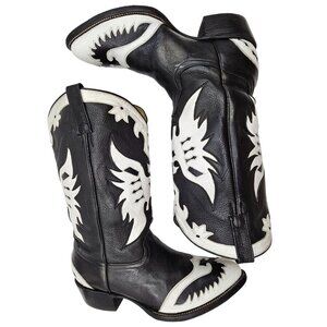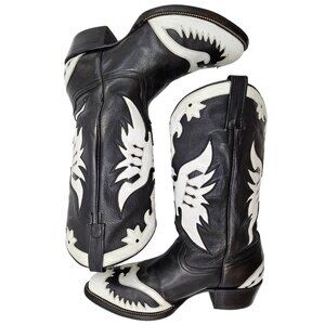 Custom Eagle Phoenix Cowboy Boots Black and White Leather Men 11 Western