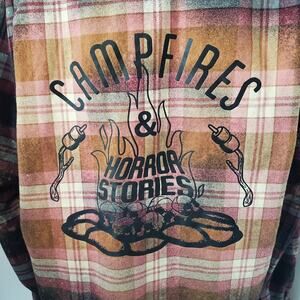 Custom Flannel Shacket, Campfire and Horror Stories, Heavyweight Button-Down XL