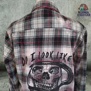 Custom Flannel Shirt, Gothic Skull Coffee Pot Grunge Button-Up Medium
