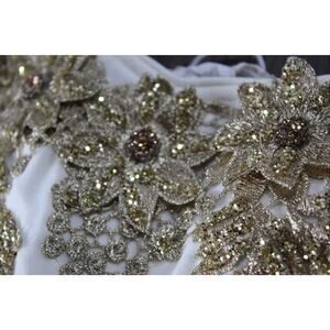 Custom Girls 14 Ice Skating costume gold glitter floral halter dance competition