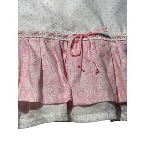 This custom-made little girl's dress is a unique piece with a vintage feel! The white dress features dainty pink dots and pink trim, with a zipper back closure.