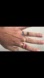 -The three pearl ring design features two smaller peach colored pearls with a center white pearl.