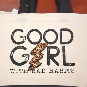 Custom Good Girl Bad Habits Large Cavas Tote Bag Leopard