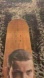 This skateboard deck features a unique graphic design with a brown wood finish. Perfect for skate enthusiasts looking to stand out.