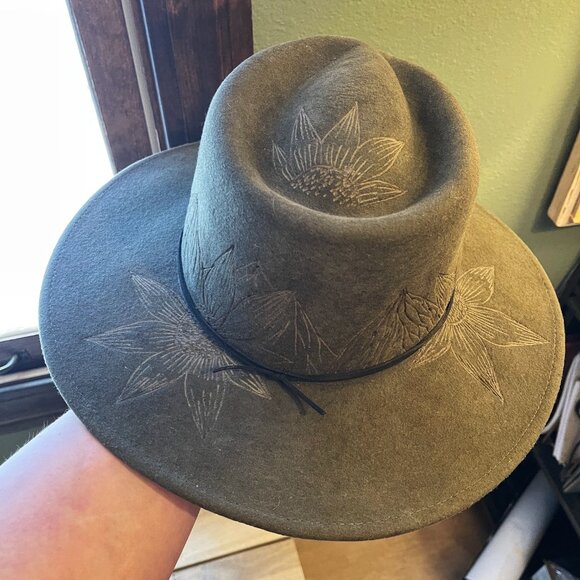 Custom Hand Burned Borges & Scott 100% Wool Hat Warm Olive Green