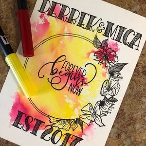 I do offer designs with the text including flowers, geometric designs and other abstract pieces like wreaths around words for name cards. Please message me with your customization choices 🥰