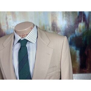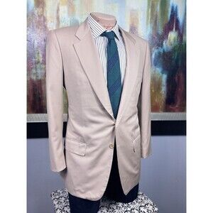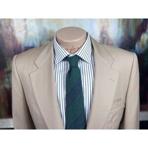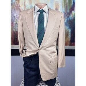 * Welcome to The Opulent Gent; A Splendid Collective. Presented is a luxurious custom made blazer. Made in Italy of 100% wool. Classic khaki color. Two small stains near wrist, shown in picture. Ive paired with a green striped tweed tie. All items in photo are for sale, check my store for anything else youre interested in. If you purchase the jacket at full price Ill include a tie for free. Measurements listed below as well as in pictures. Please be aware that all sales are final. Any questions feel free to ask. Thanks for visiting and have a great day!