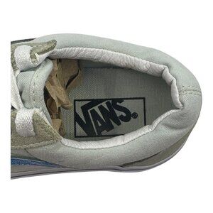 Color: Light gray / off-white with tan suede and multi-color artwork
