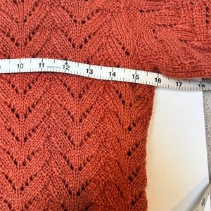 This is a beautiful hand-knit wool sweater - so perfect for fall! It is an open weave knitted design with ribbed knit border at the cuffs and waist. It is listed as an XS, but please also refer to the measurements as shown as there are no labels or tags.