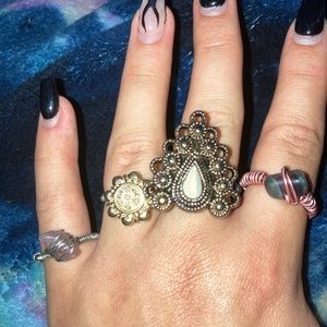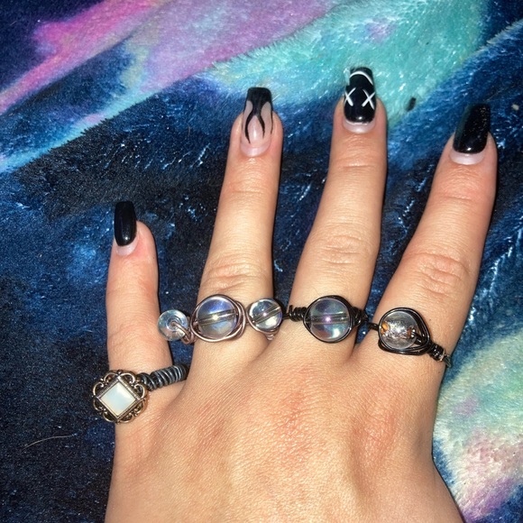 Each ring is $15 and either contains a stone or is entirely hand wrapped😍🧿 even stone rings are handmade🔮💕 RINGS CAN BE MADE INTO ANY SIZE