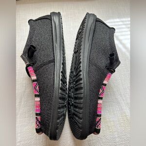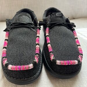Chic moccasins with black base and pink bead accents. Lightweight and comfy.