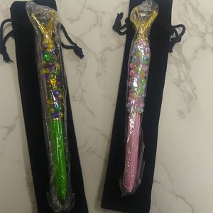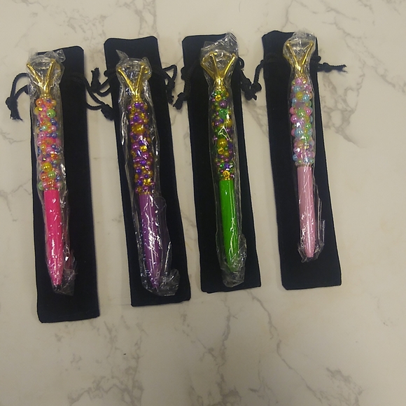 4 custom rhinestone ink pens with refills and protective velvet bags.
