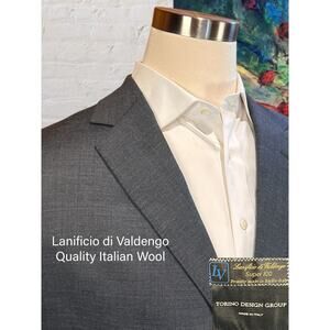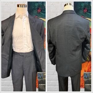Custom Italian Designer Mens Suit 46L 36x30 Gray Wool Super 100s Luxury
