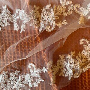 Custom Ivory Fingertip Veil with Lace & Pearl Butterfly Details – Veil with comb