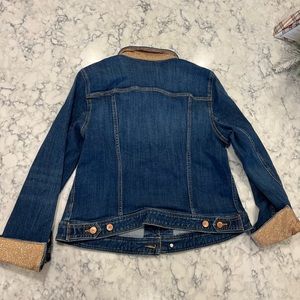 It is a Talbots brand jacket that has been styled with glitter on the collar and sleeve cuffs. It has a Louis Vuitton scarf pinned to the left chest of the jacket. It has never been worn is a special boutique item! If you have any questions about the jacket, please don’t hesitate to ask!