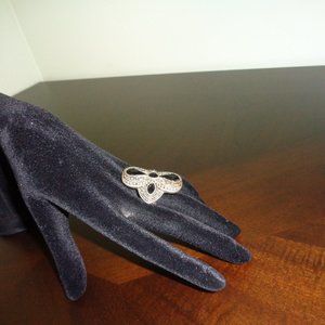 This ring is massive and heavy. It's vintage style and will look great on a finger. It shows some signs of wear and some of the small rocks maybe missing, but not too visible. It's comfortable stretches up to size 8.5.