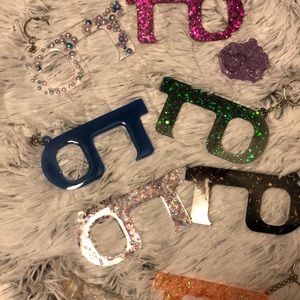 ✨Initial Keychains ✨Elephant keychains ✨ No touch keychains You pick your colors and glitters Tassels and pom poms available At additional price