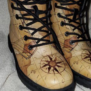 Listing is a pre owned pair of fun boots by Groove Bags Custom Kicks. Item show no wear, scuff or damage. High-top, lace up with flat soles with treads. Inside is lightly padded. Around the world theme WONDER LUST. Rare find in excellent condition. These show no wear inside or out.