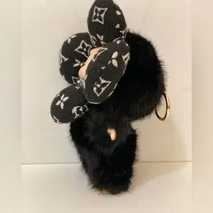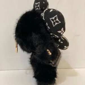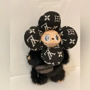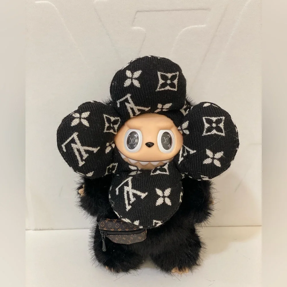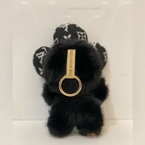 NEW! Black monogram custom Labubu! Fur is super soft. There is a keyring on it’s head like traditional labubus.