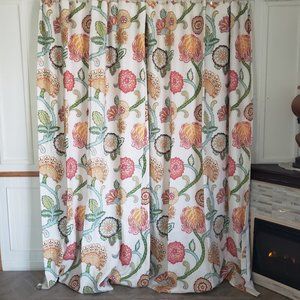 Custom Linen CurtIns 94W x 86L Jacobean Print Floral Cotton Lined