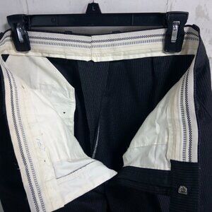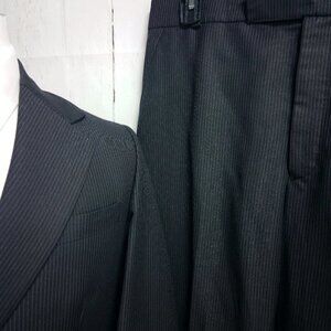 Custom Made 39S 2 Button Black Glittering Pinstripe 2pc Suit 33x29 Flat Front