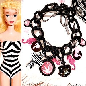 Custom Made Barbie Vintage Charm Beaded Black Infinity Necklace w Beaded Buckle