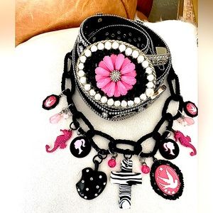 One of a Kind Artisan Vintage Charm Necklace, all Unique with Retro 50’s Pink & Black Motif