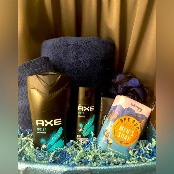 This Basket was ordered & custom made, each Basket that is made is shown first to made sure it's exactly what they want.... this one came with face cloth, lufa, body wash, deodorant, bar soap and dude wipes💕💕
