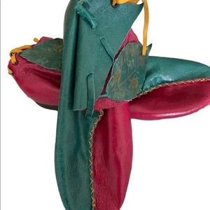 These custom made leather boots were created for me by an artist in Bogota Colombia. I have never worn them so they are brand new. The heels lace up in the back and there is another lace on the side of the shoe to adjust the way you would like to wear it. The leather is the highest quality and so buttery and soft. They were made for me and I am size 9. The rubber soles are marked 37 but that must be a Colombian size. The soles measure 10 inches. Catherines Is a closet for anyone who is looking for something different , unique and high-quality.