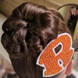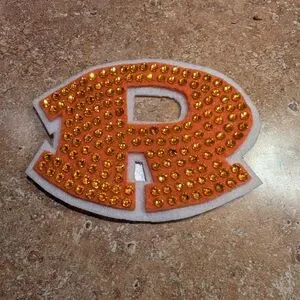 Custom made embellished R with Swarovski crystals. Used for originally as a hairpiece. Could be used for customizing clothing or accessories.