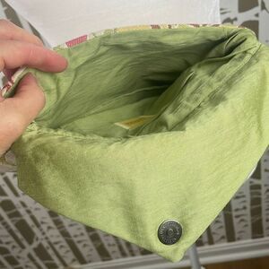 Additional Details: Fantastic floral print, asymmetrical envelope flap with magnetic closure, one interior slip style pocket, Frida Kahlo decorative button (attached by velcro).