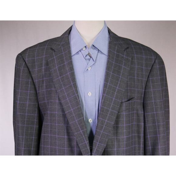 Custom Made! Gray w/ Purple Windowpane Wool-Silk 2-Btn Sportcoat Blazer 52R