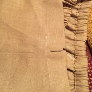 Custom made linen capris. Khaki color. Linen. Elastic waistband. With pocket. Made for size 12 but because of elastic can give or take a size. Short/petite.