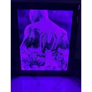 Custom made “Third Dimension Designs” neon lighted color changing Spider-Man/Venom lighted box. Has 4 different controlled changing colors. You can set it on your preference. Measures 12.5 inches tall by 10.5 inches & sticks out at 2.5 inches. Unique one of a kind piece for any collector or kids room. No damages. Well cared for.