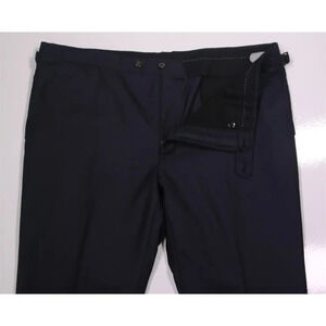 Custom Made Recent Solid Navy Blue Flat Frt Wool Dress Pants Side Buckles 40x31