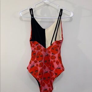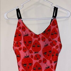 Adorable strawberry Fairy print reverses to ribbed black & white Custom made Fits like a small