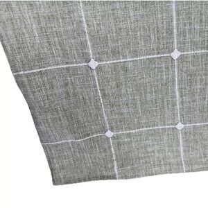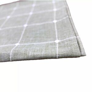 Medium to Heavy-weight linen fabric in green. White embroidered checkered pattern. High quality.