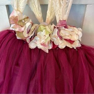 Reposhing this item I purchased from @tjf008. My daughter wore it once as a flower girl for a wedding. She loved it. I ended up having 2 pairs (different cuts) of built in underwear made to snap in. There are multiple shades of tulle layered. Outer are a wine color inner are more true red.