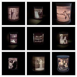 This is a custom 3D printed lighted lithophane lamp made with your favorite photos. It can be made with up to four photos (with more than 4 photos, I can make it into a collage to fit).