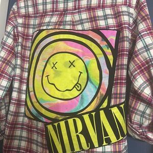 Custom Made Upcycled Nirvana Graphic Flannel Size 14/16