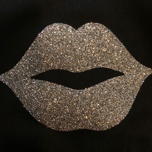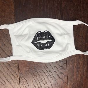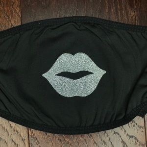 White face mask with black glitter lips and black face masks with silver glitter lips. Make sure to specify which one you would like.