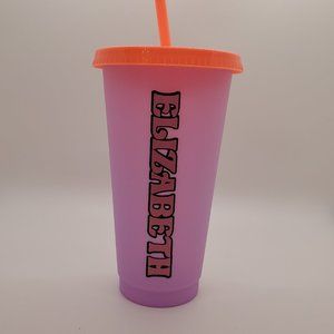 This listing is for one 24 oz (Pink/Purple) color change tumbler customized with your name.