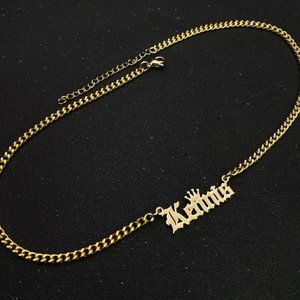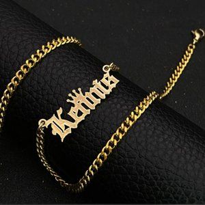 Custom Name Old English Necklace With Crown Personalized Chain Jewelry Pendant