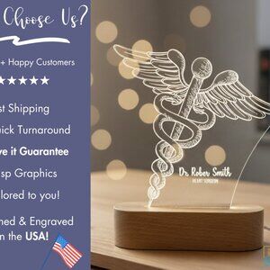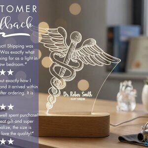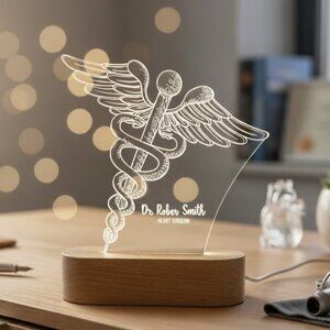 Custom Nurse Night Light | Caduceus Doctor & Surgeon Gift for Medical Staff